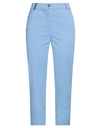 tapered pants, woven, solid color, leather trims, high waisted, slim fit, zipper fastening, button fastenings, side slit hemline, welt pockets, stretch, machine wash or dry clean, do not bleach, do not tumble dry, contains non-textile parts of animal origin, cropped