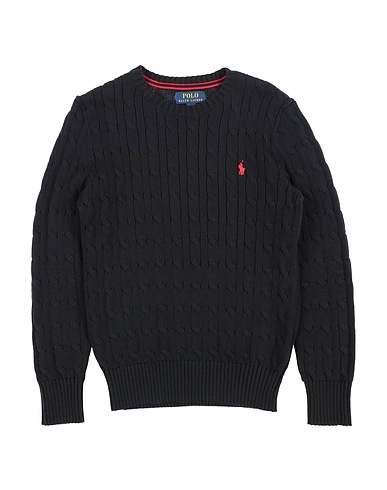 cable-knit, lightweight knit, brand logo, solid color, crewneck, long sleeves, no pockets, machine wash or dry clean, tumble dry, large sized