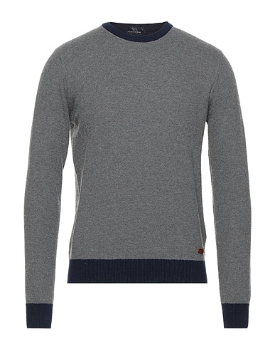 knitted, mélange, lightweight knit, brand logo, two-tone, round collar, long sleeves, no pockets
