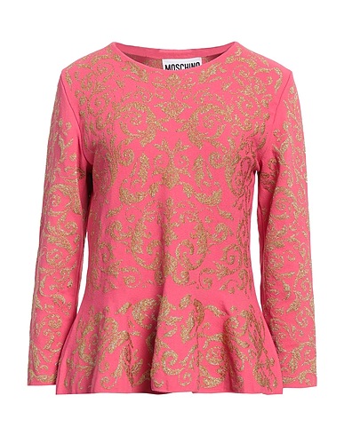 knitted, metallic, lightweight knit, paisley-print, no appliqués, crewneck, long sleeves, dry clean, do not bleach, do not tumble dry