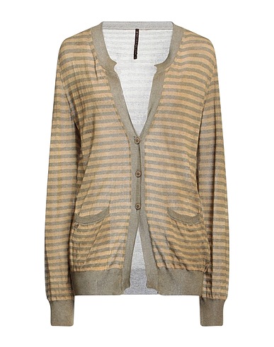 knitted, lightweight knit, brand logo, stripes, v-neck, long sleeves, button closing, multipockets, recycled material