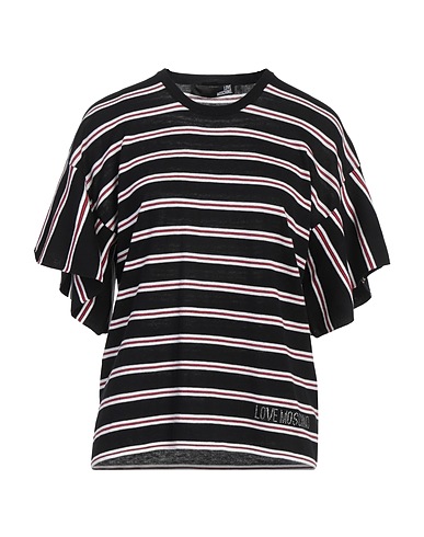 knitted, lightweight knit, brand logo, crystals, striped, crewneck, short sleeves, without pockets, hand wash, do not bleach, do not tumble dry