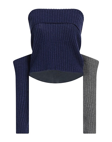 wool, mid-weight knit, no appliqués, mélange, two-tone, deep neckline, long sleeves, detachable sleeves, without pockets, dry clean, do not bleach, do not tumble dry