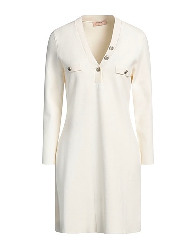 flared dress, knitted, lightweight knit, solid color with appliqués, embellished, brand logo, v-neck, long sleeves, hand wash, do not bleach, do not tumble dry