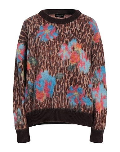 knitted, medium-weight knit, multicolor, no appliqués, polo collar, long sleeves, hand wash or dry clean, do not bleach, do not tumble dry