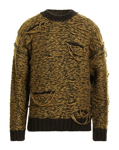 bouclé, heavy-weight knit, distressed, no appliqués, mélange, crewneck, long sleeves, hand wash or dry clean, do not bleach, do not tumble dry, this brand runs large