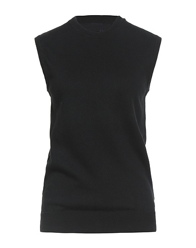 knitted, lightweight knit, solid color, embroidered logo, crewneck, sleeveless, machine wash or dry clean, do not bleach, do not tumble dry