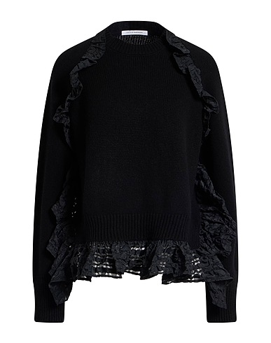 wool, jacquard, lightweight knit, ruffles, solid color with appliqués, crewneck, long sleeves, dry clean, do not bleach, do not tumble dry