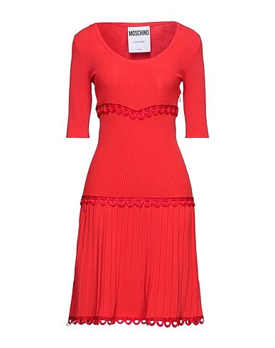 pleated dress, knitted, lightweight knit, pleated, solid color with appliqués, embellished, scoop neckline, short sleeves, unlined, without pockets