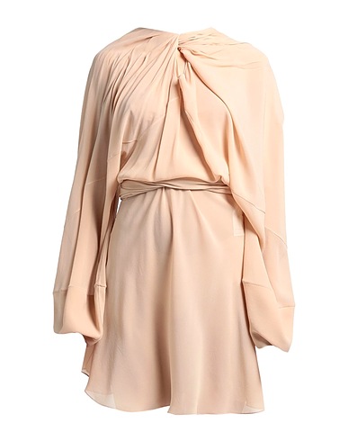 flared dress, crepe, detachable application, solid color, deep neckline, long sleeves, unlined, no pockets