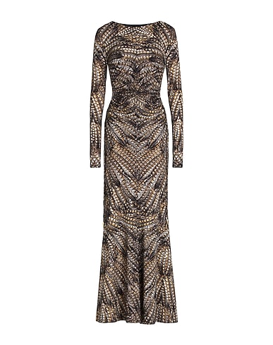 flared dress, synthetic jersey, stretchy fabric, animal print, metal applications, laces, crewneck, long sleeves, built-in bodysuit, without pockets, flared hem