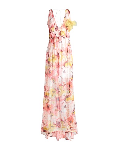 crepe, floral appliqués, multicolor, deep neckline, sleeveless, partially lined, without pockets, flared dress