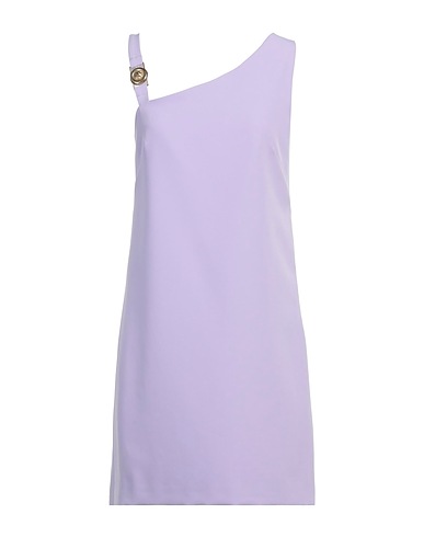 flared dress, crepe, stretchy fabric, solid color with appliqués, metal applications, brand logo, deep neckline, sleeveless, fully lined, zipper fastening, without pockets