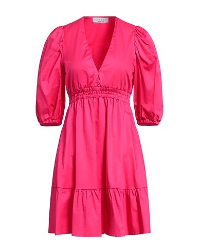 woven, no appliqués, solid color, v-neck, 3/4 length sleeves, unlined, no pockets, flared dress