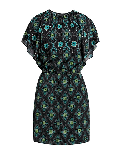 flared dress, crepe, floral-print, brand logo, crewneck, short sleeves, fully lined, zipper fastening, multipockets, machine wash or dry clean, do not bleach, do not tumble dry