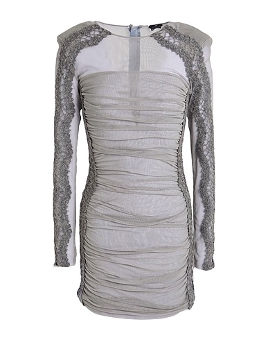 bodycon dress, tulle, stretchy fabric, solid color, draped, brand logo, knitted trims, crewneck, long sleeves, shoulder pads, fully lined, zipper fastening, hook fastenings, dry clean, do not bleach, do not tumble dry, amp up the glamour with chic designer party outfits for your next event or fun night out