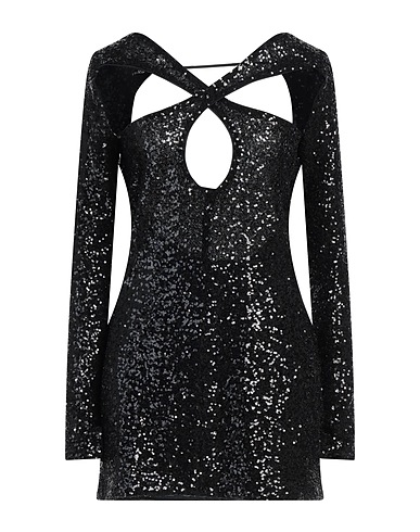 sequinned dress, tulle, stretchy fabric, solid color with appliqués, sequins, scoop