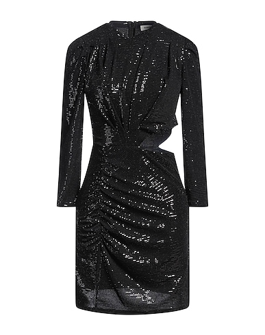 sequinned dress, knitted, lightweight knit, stretchy fabric, solid color with appliqués, sequins, crewneck, 3/4 length sleeves, fully lined, without pockets, hand wash, do not bleach, do not tumble dry, amp up the glamour with chic designer party outfits for your next event or fun night out