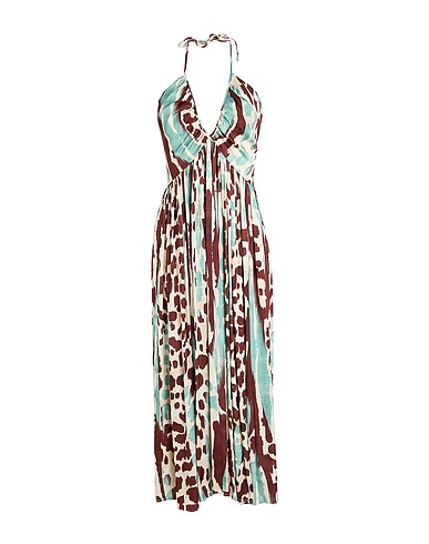 pleated dress, satin, multicolor, no appliqués, halterneck, sleeveless, without pockets, machine wash or dry clean, do not bleach, do not tumble dry, planning a weekend getaway or beach vacation? this is the effortless summer style you need