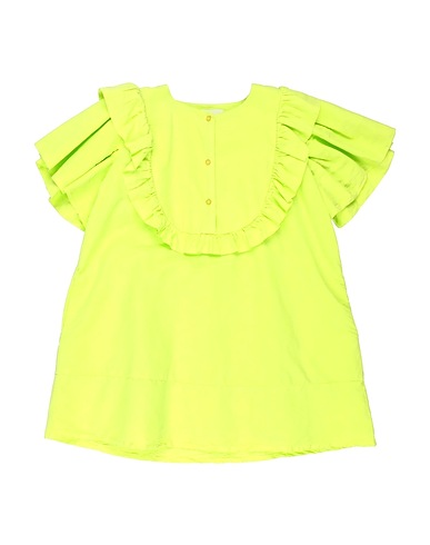woven, solid color, ruffles, crewneck, short sleeves, unlined, button fastenings, machine wash, do not bleach, do not tumble dry