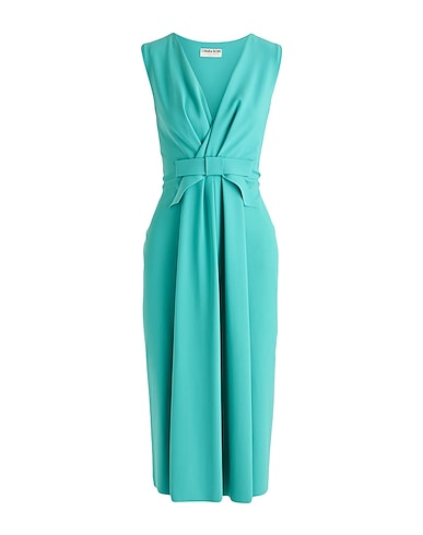bodycon dress, jersey, solid color with appliqués, bow-detailed, darts, v-neck, sleeveless, unlined, without pockets, stretch, machine wash or dry clean, do not bleach, do not tumble dry, do not iron