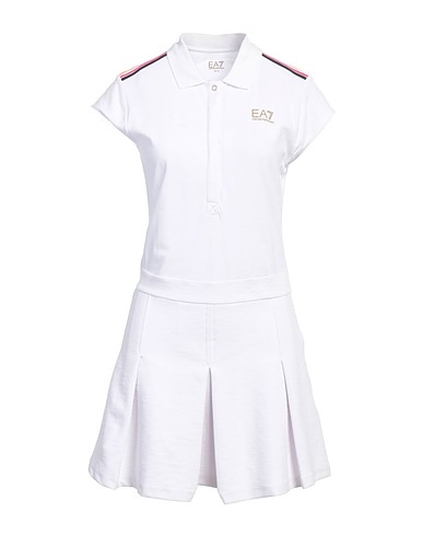 pleated dress, piqué, jersey, solid color with appliqués, brand logo, embellished, polo collar, short sleeves, zipper fastening, snap fastenings, without pockets, stretch, machine wash, do not bleach, do not tumble dry