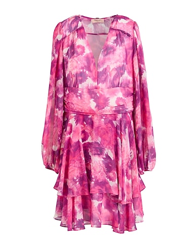 flared dress, crepe, floral-print, tiered, v-neck, long sleeves, elasticated cuffs, fully lined, zipper fastening, without pockets, hand wash or dry clean, do not bleach, do not tumble dry, be the best-dressed bridesmaid or wedding guest with this designer piece, perfect for any ceremony