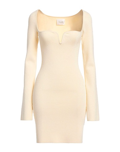 bodycon dress, knitted, lightweight knit, solid color, no appliqués, v-neck, long sleeves, without pockets, dry clean, do not bleach, do not tumble dry
