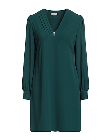 flared dress, crepe, solid color, button-embellished, pleated, v-neck, long sleeves, fully lined, zipper fastening, machine wash or dry clean, do not bleach, do not tumble dry, be the best-dressed bridesmaid or wedding guest with this designer piece, perfect for any ceremony