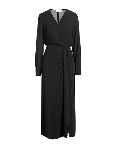 dress, crepe, solid color, no appliqués, v-neck, long sleeves, buttoned cuffs, fully lined, zipper fastening, machine wash or dry clean, do not bleach, do not tumble dry