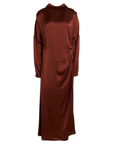 dress, satin, solid color, draped, turtleneck, long sleeves, unlined, zipper fastening, machine wash or dry clean, do not bleach, do not tumble dry