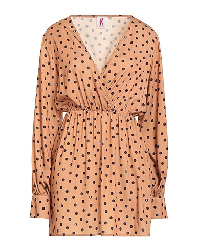 flared dress, satin, stretchy fabric, polka-dot, brand logo, wrap-effect, deep neckline, long sleeves, buttoned cuffs, elasticized waist, slit pockets, machine wash or dry clean, do not bleach, do not tumble dry