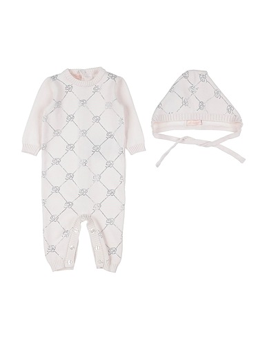 knitted, lightweight knit, solid color with appliqués, brand logo, crystals, crewneck, long sleeves, button fastenings, 2-piece set, machine wash or dry clean, do not bleach, do not tumble dry