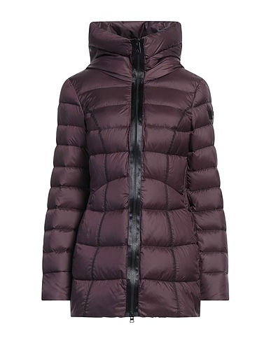 down coat, shell, quilted, water-repellent fabric, brand logo, solid color, hooded, long sleeves, buttoned cuffs, goose down interior, heavyweight padding, zipper fastening, slit pockets, recycled material, contains non-textile parts of animal origin, machine wash, do not bleach, tumble dry