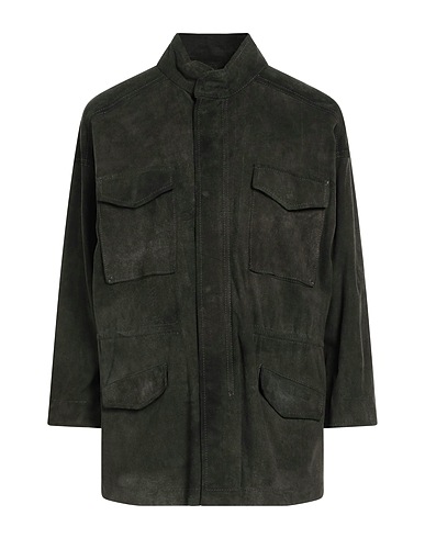 leather, suede effect, brand logo, solid color, mandarin collar, single-breasted , long sleeves, internal slip, button closing, zipper closure, drawstring waist, multipockets, contains non-textile parts of animal origin, single-breasted jacket
