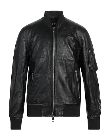 leather, no appliqués, solid color, crewneck, single-breasted , long sleeves, fully lined, zipper closure, multipockets, contains non-textile parts of animal origin, bomber jacket