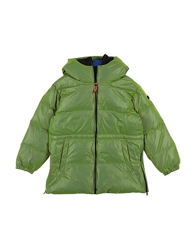 shell, solid color with appliqués, brand logo, detachable application, hooded, single-breasted , long sleeves, goose down interior, zipper fastening, multipockets, contains non-textile parts of animal origin, machine wash, do not bleach, do not tumble dry, do not iron