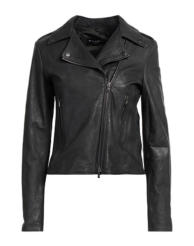 biker jacket, leather, solid color, tabs, lapel collar, single-breasted , long sleeves, zipped cuffs, fully lined, zipper fastening, zipped pockets, contains non-textile parts of animal origin, do not wash, do not bleach, do not tumble dry, do not iron, this brand runs small