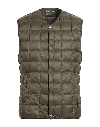 shell, quilted, brand logo, solid color, v-neck, sleeveless, goose down interior, lightweight padding, snap fastenings, slit pockets, contains non-textile parts of animal origin, machine wash, do not bleach, do not tumble dry
