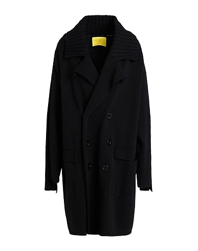 double-breasted coat, knitted, medium-weight knit, solid color, no appliqués, scoop