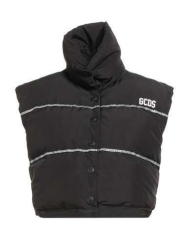 shell, quilted, crystals, brand logo, solid color with appliqués, turtleneck, sleeveless, synthetic filling, lightweight padding, snap fastenings, machine wash, do not bleach, do not tumble dry, do not iron
