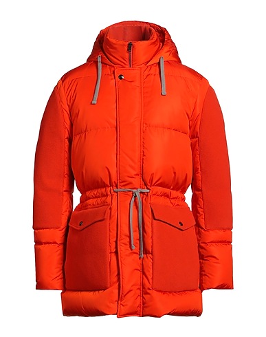 down coat, shell, felt, brand logo, solid color, hooded, long sleeves, goose down interior, heavyweight padding, zipper fastening, snap fastenings, flap pockets, contains non-textile parts of animal origin, dry clean, do not bleach, do not tumble dry