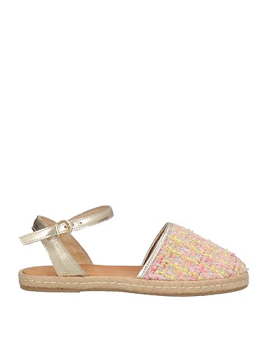 espadrilles, tweed, leather, metallic, multicolor, no appliqués, buckle, round toe, flat, rubber cleated sole, leather lining, contains non-textile parts of animal origin