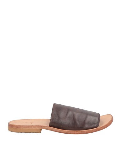 leather, no appliqués, solid color, leather backing, round toeline, flat, leather/rubber sole, contains non-textile parts of animal origin, large sized, slide sandals