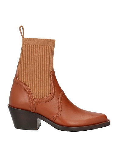 cowboy ankle boots, leather, knitted, ribbed, solid color, no appliqués, leather lining, pointed toe, cuban heel, leather/rubber sole, contains non-textile parts of animal origin