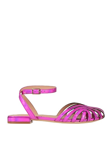 leather, laminated effect, no appliqués, solid color, leather lining, buckling ankle strap closure, round toe, flat, rubber cleated sole, contains non-textile parts of animal origin, fisherman sandals