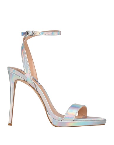 coated fabric, varnished effect, no appliqués, solid color, fully lined, buckle fastening, round toeline, stiletto heel, covered heel, rubber sole, ankle strap sandal