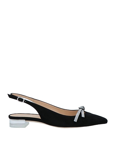 slingback ballet flats, suede, solid color with appliqués, bow-detailed, crystals, leather lining, pointed toe, flat, leather/rubber sole, contains non-textile parts of animal origin