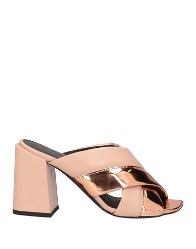 coated fabric, metallic, no appliqués, two-tone, fully lined, square toe, square heel, rubber sole, sandals