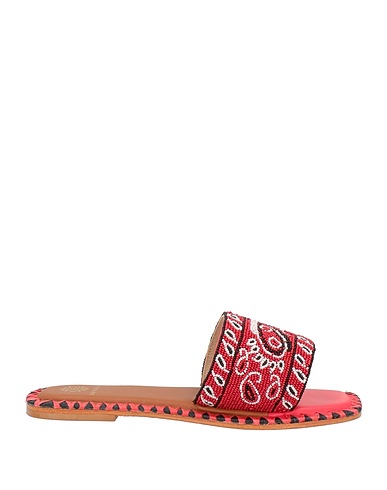 woven, beads, paisley-print, leather lining, round toe, flat, rubber sole, contains non-textile parts of animal origin, slide sandals, small sized